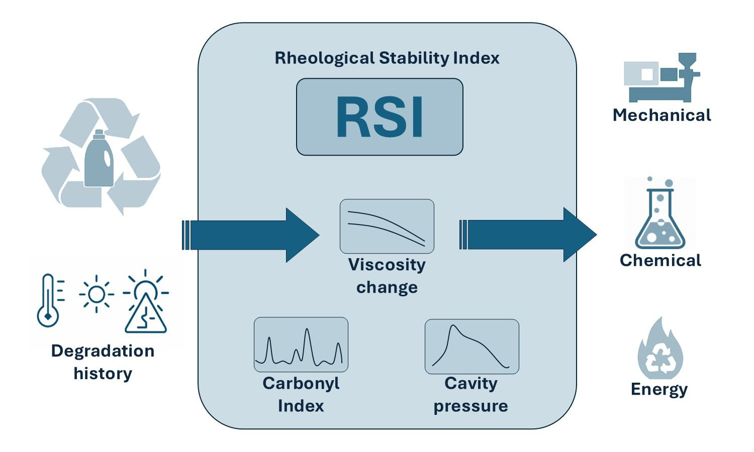 The greatest obstacle to recycling post-consumer high-density polyethylene (PCR-HDPE) is typically the degradation of properties caused by impurities and heterogeneity. However, a critical analysis of the literature reveals that the real bottleneck is not the material composition, but rather rheological stability, which simultaneously determines the degradation history of the waste stream, melt behavior, and processability at the cycle level. This review proposes a new perspective: the decision among mechanical, chemical, and energetic recycling is better made based on a unified rheological stability index (RSI), which integrates carbonyl index, viscosity change after multiple instances of melting, melt flow index (MFI) instability, in-mold pressure fluctuation, and the degree of polymer incompatibility. RSI enables the prediction of the processability of PCR-HDPE and identifies which recycling path a fraction is most suitable for. The study demonstrates how an RSI-based approach can reduce quality risk, improve cycle stability, and support circular decision-making in an industrial environment.